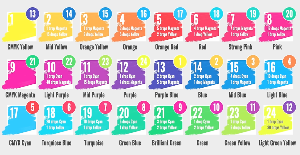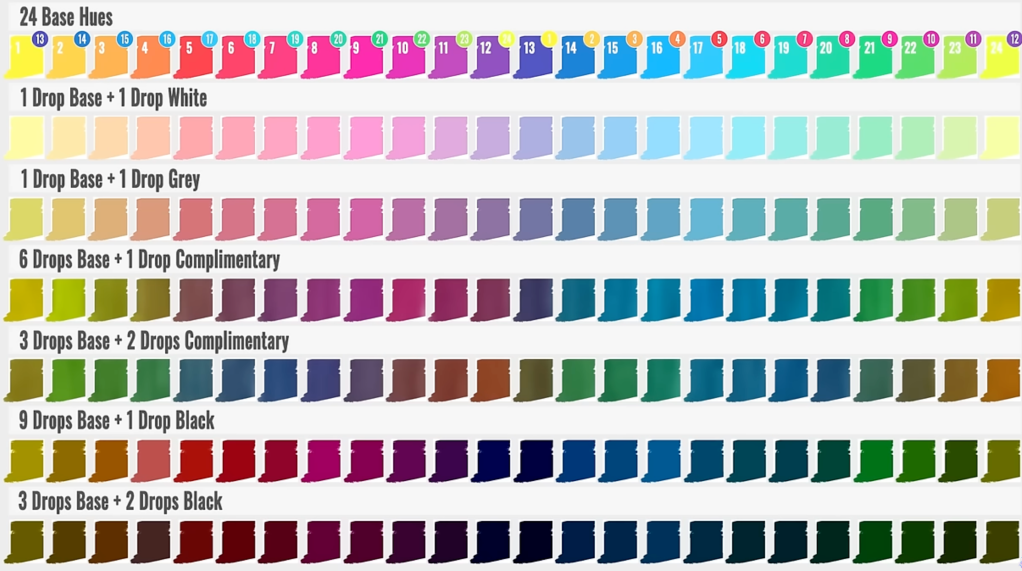 Miniature General Tutorials Clean Builds and Paint Methods Primer Color Theory Stipple Airbrush Non Metallic Metal Silly Putty Masking Stick with It Interesting Techniques Hobby Space Color Theory Mixing Inks- Airbrush Friendly Mixing Inks – Colors Ratios Mixing Inks – 24 Bases and Complimentary Colors